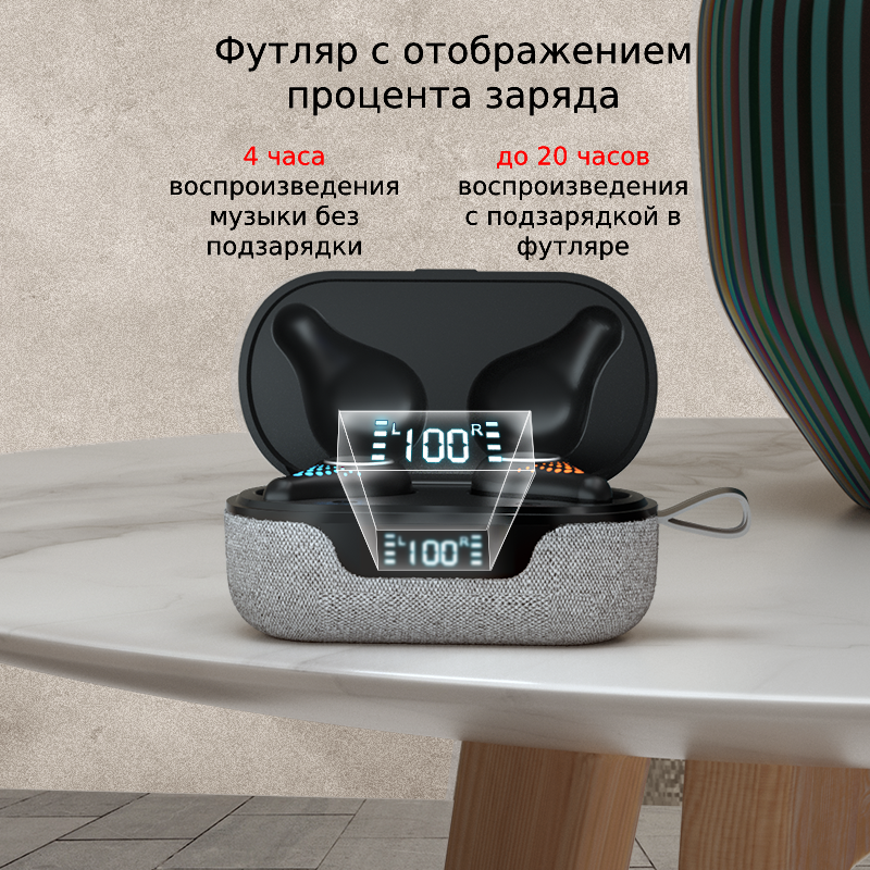 Емкость зарядного блока 500 мАч, емкость наушника 35 мАч. Время зарядки: 1 час (наушники); 2-3 часа (зарядный чехол). Размер кейса 67*36*32 мм.