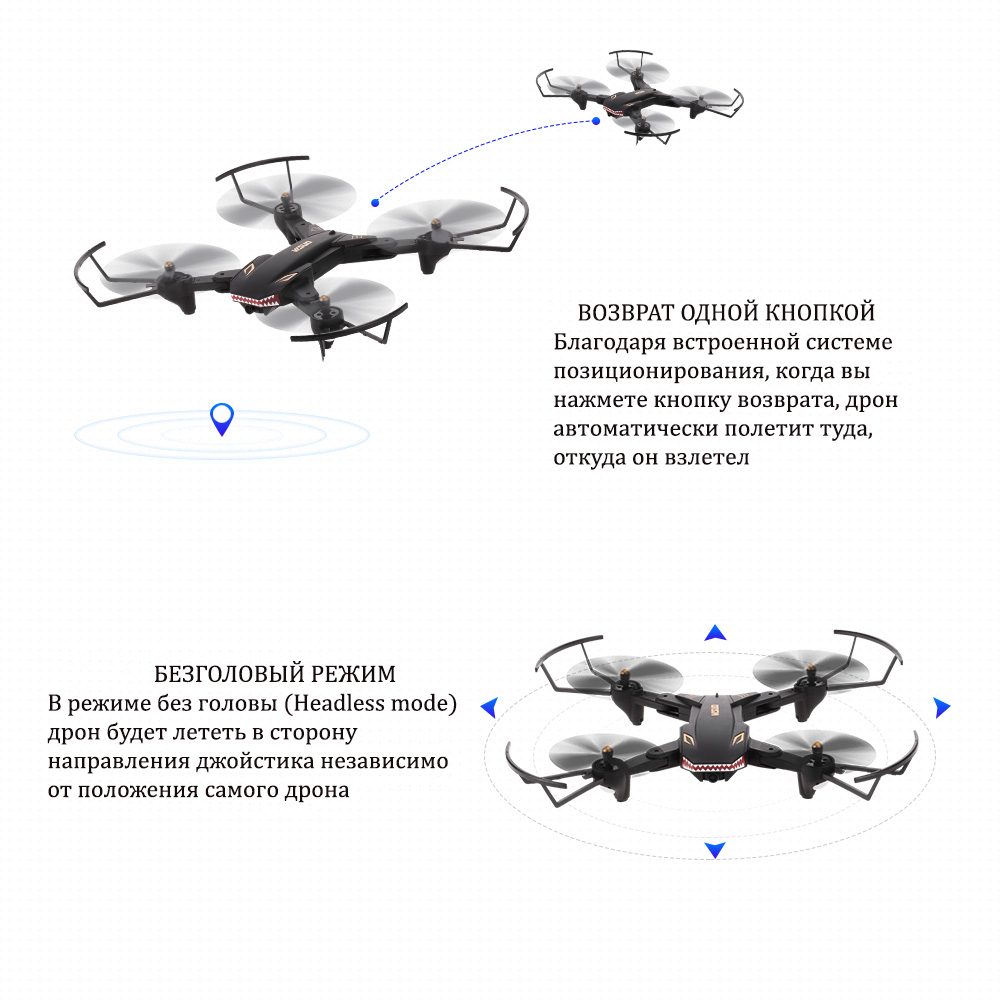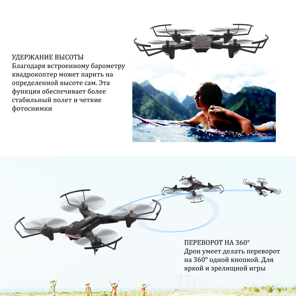 Також Visuo XS809S може виконувати переворот на 360 градусів, щоб справити враження на оточуючих та викликати трепет у вашої аудиторії. Максимальна дистанція керування складає 100 метрів, що дає вам багато простору для польоту. Поряд з цими функціями квадрокоптер має функцію утримання висоти, автоматичним поверненням у точку зльоту однією кнопкою, має 3 рівні швидкості польоту, щоб зробити політ більш захоплюючим.