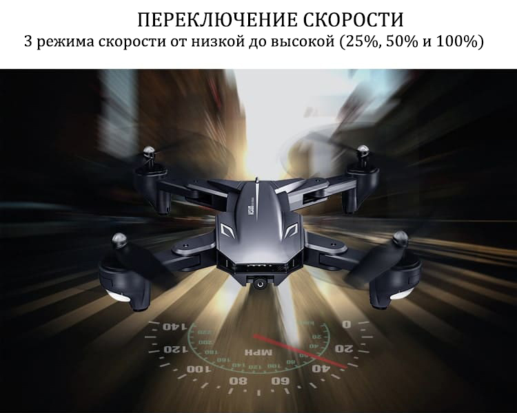 Завдяки режиму Headless вам не потрібно знати положення голови дрона: при натисканні стику "вперед" він полетить вперед. Функція 3D Flips є поворотом на 360 градусів. Просто натисніть на одну клавішу, ви можете побачити цей пілотажний трюк. Квадрокоптер Visuo XS816 має 3 режими швидкості від низької до високої (25%, 50% і 100%), тому модель однаково добре підходить для новачків, середнього рівня та експертів в управлінні.