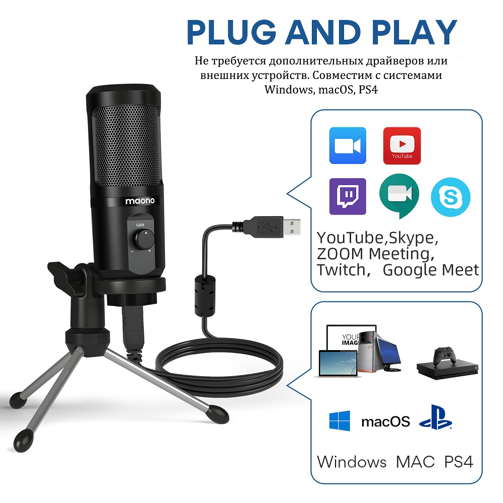 Так, цей USB-мікрофон можна використовувати для мітингів і конференцій в Zoom на ПК та ноутбуці.
