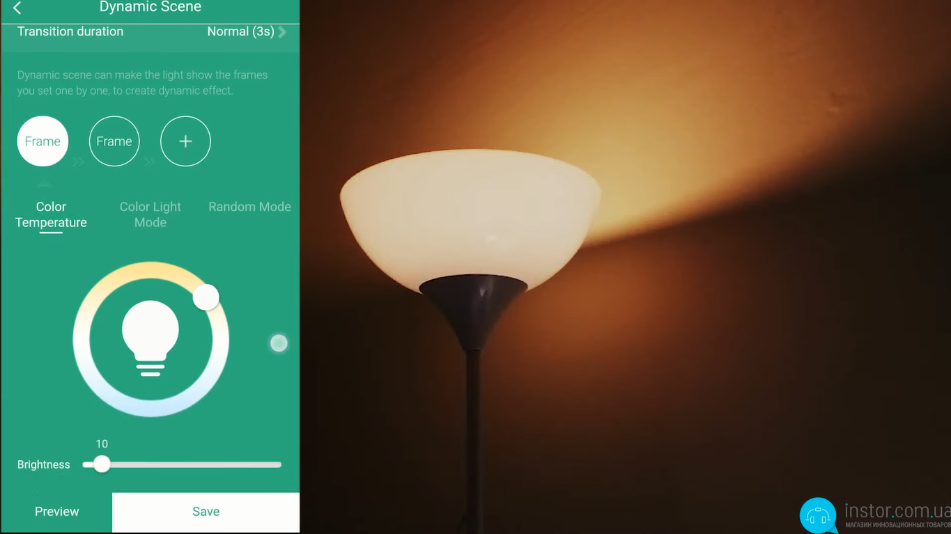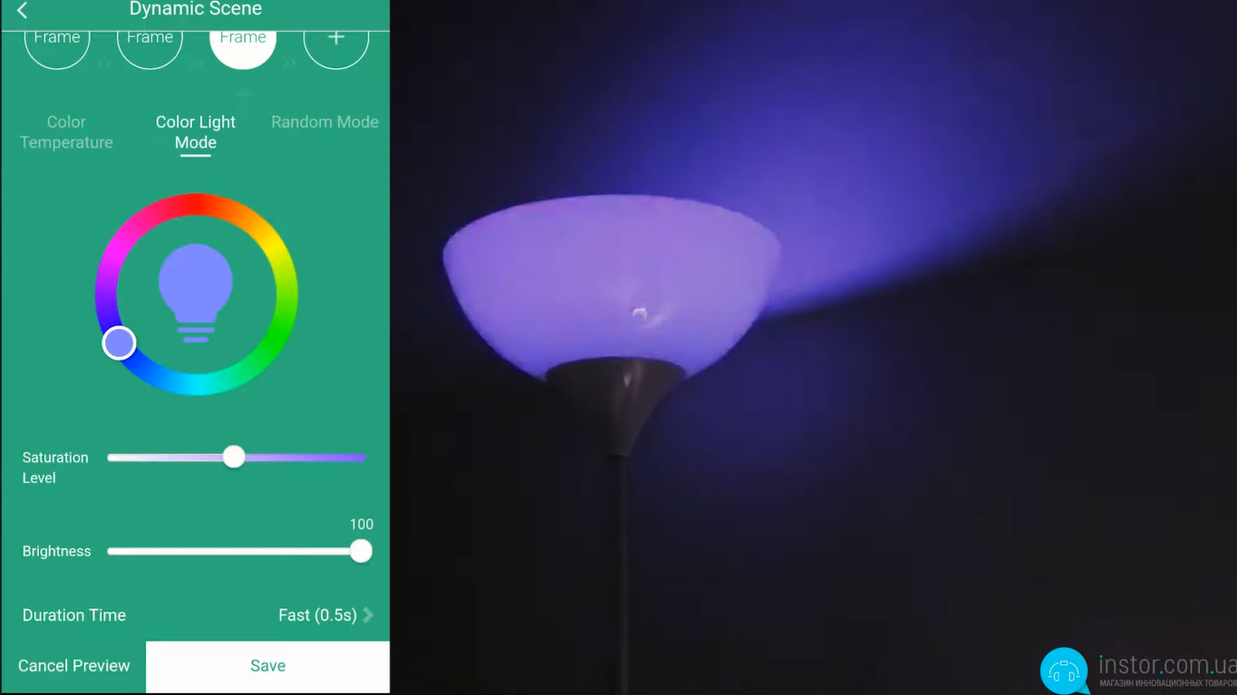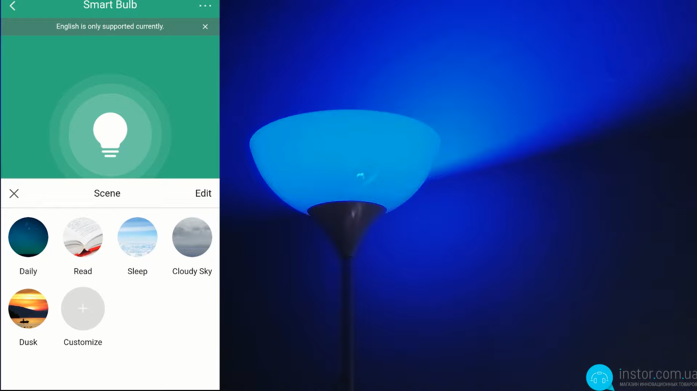 Остання функція – це сцени. Можна скористатися як вбудованими, так і задати свої. Суть сцени - це зміна кольору та інтенсивності світіння за заданим чи своїм шаблоном. Здебільшого – це основні функції лампочки. Окремо зазначимо, що кілька лампочок можна об'єднати в одну групу і керувати ними одночасно. Це відмінна функція, якщо ви хочете надати певну атмосферу всьому приміщенню або навіть усьому будинку. Крім цього, керувати лампочкою можна за допомогою Google Ассистента або Alexa, що надзвичайно зручно, особливо, якщо у вас є розумна колонка.