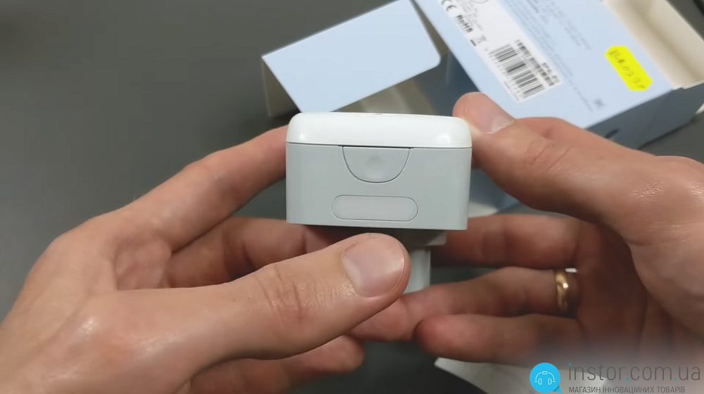 Всередині коробки лише інструкція та сама розетка Broadlink SP4L. Розумний пристрій виглядає як класична розетка. Спереду розміщується світлодіод стану розетки та сам розетковий вхід. Кнопка увімкнення знизу пристрою, там же розташовується світлодіод підсвічування.