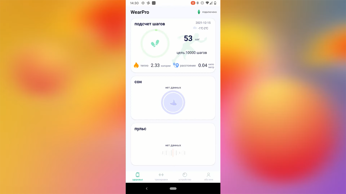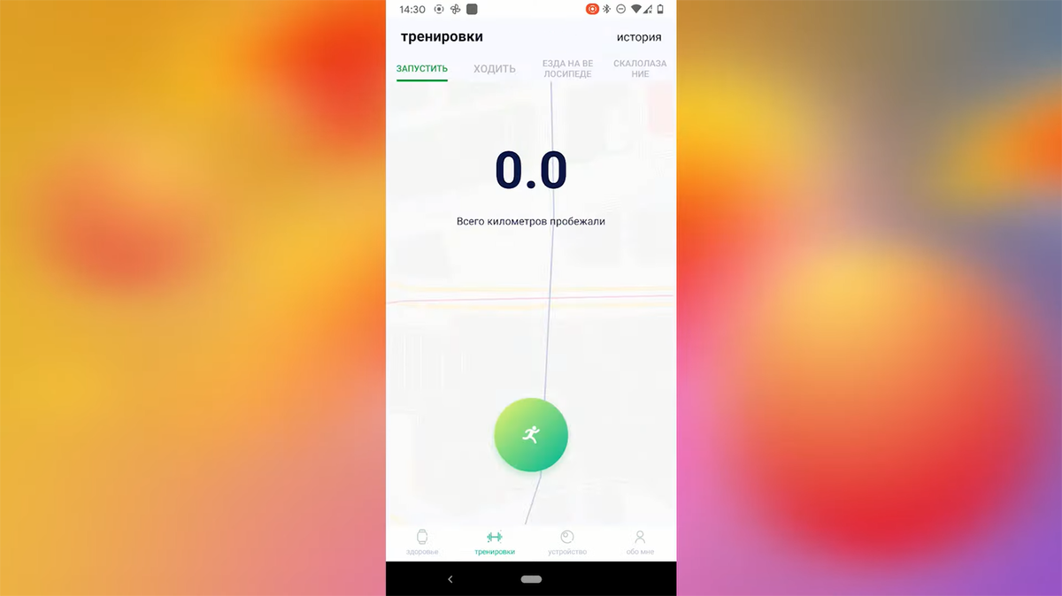У самому додатку нас зустрічає статистика за день. Натискаємо на пункт меню, щоб відкрити статистику більш детально і за різні періоди. У меню тренування можна запустити режим тренування з підтримкою GPS на смартфоні. Найкраще включати тренування саме так, тому що точність пройдених кроків, відстані та спалених калорій буде на порядок вищою, завдяки використанню GPS на вашому смартфоні.