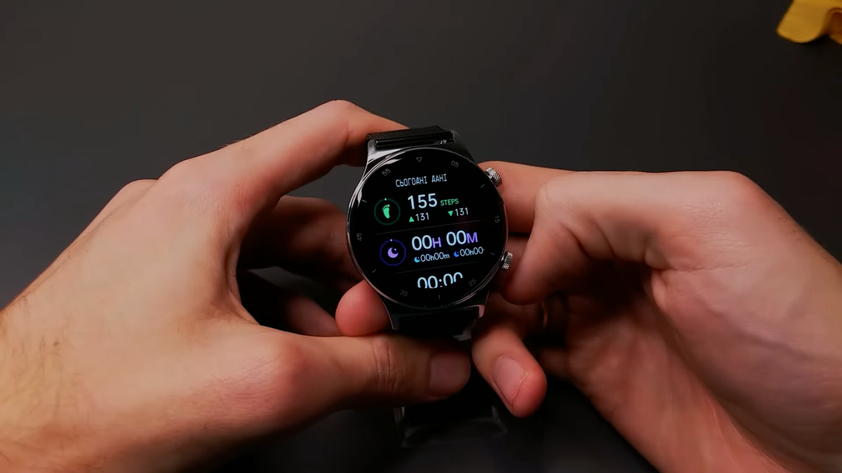 Ознайомимося ближче із характеристиками пристрою. Спереду Jiks Watch Pro обладнані сенсорним IPS дисплеєм діагоналлю 1,32 дюйми та роздільною здатністю 360*360 пікселів. Дисплей досить яскравий, має відмінну кольоропередачу і плавність роботи. До того ж сенсор пристрою дуже чутливий і працює без затримок. А на тильній стороні пристрою розташовані датчики серцевого ритму та піни для зарядного магнітного кабелю. Серцем годинника є процесор Goodix 5515, завдяки якому годинник працює дуже плавно, а в парі з модулем Bluetooth 5.0 Jiks Watch Pro надійно тримають зв'язок зі смартфоном або планшетом.