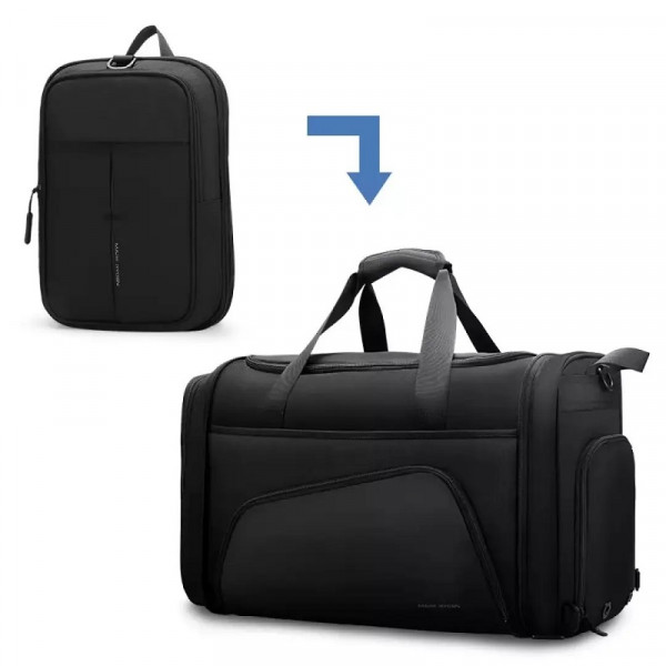 Рюкзак Mark Ryden Active має об'єм 6 літрів і важить всього 1,1 кг. У складеному вигляді він має розміри 32 х 23 х 8 см, а при збільшенні в дорожню сумку об'єм збільшується до 37 л та розмірів 50x32x23 см. У ньому ви зможете розмістити все необхідне для роботи, навчання, мандрівок або спорту. Рюкзак-сумка має містке основне відділення для одягу та аксесуарів. Усередині є безліч кишень та органайзерів для дрібниць, а також прихована кишеня на блискавці для цінних речей. На передній стороні рюкзака є кишеня для швидкого доступу до часто використовуваних предметів. На боці є спеціальна кишеня для взуття.
