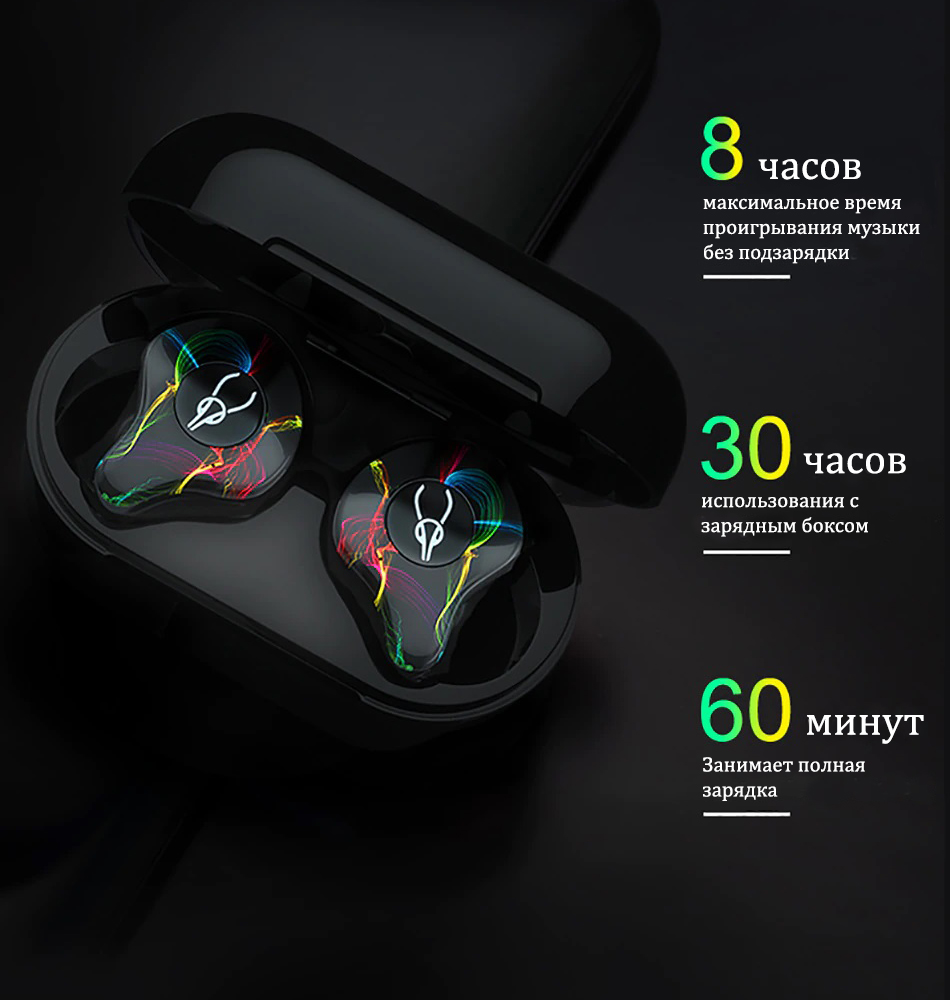 В данной модели используется Bluetooth 5.0 с радиусом работы до 10 метров, чтобы обеспечить Вам лучшую связь и низкий уровень энергопотребления. Емкость аккумулятора наушников составляет 60 мАч, а с чехлом для зарядки 750 мАч, Вы можете заряжать их еще 4 раза. Время зарядки составляет всего 1 час, а время воспроизведения музыки или совершения разговоров аж до 6 часов. К слову, каждый наушник можно подключить отдельно к разным устройствам. Например, если у Вас есть рабочий и личный телефон.