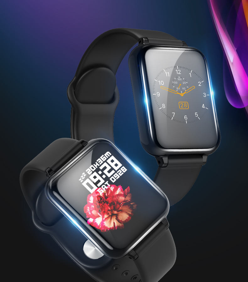 Прямоугольный корпус имеет цветной TFT дисплей с диагональю 1,3 дюйма, разрешением 240 на 240 пикселей. Вы можете регулировать яркость дисплея, чем продлите продолжительность работы смарт вотч от одного заряда,а также выбрать заставку на главный экран. Приятный силиконовый ремешок можно заменить, например, на более яркий. За бесперебойную работу отвечает встроенный аккумулятор 180 мАч.