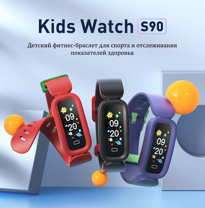 Детский фитнес трекер Lemfo S90 - это отличный помощник как во время тренировок, так и в повседневной жизни. Компактный корпус и удобный ремешок, который плотно облегает запястье, выполнен специально для юных непосед.