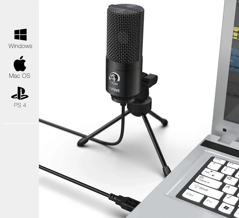 В комплект поставки входит микрофон Fifine K669B, крепление для штатива, металлический штатив.