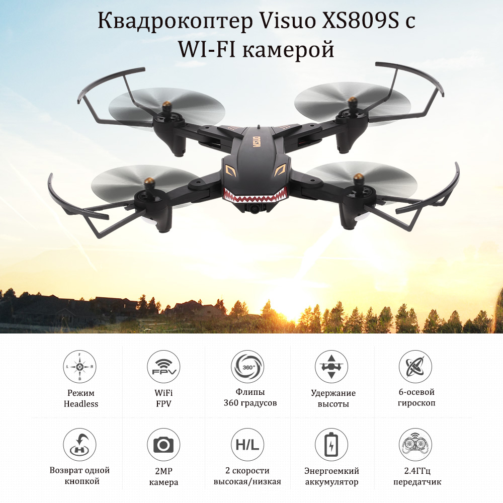Складной квадрокоптер Visuo XS809S со встроенной 720p WIFI камерой