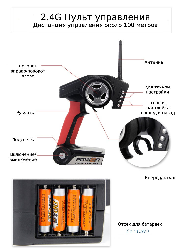 Дальность управления машинкой на радиоуправлении составляет около 100 метров.
