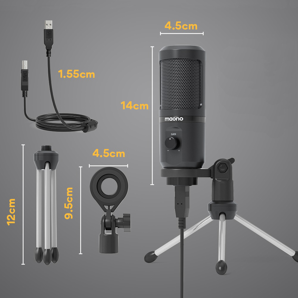 С моделью Maono AU-PM461TR вы можете получить высококачественный микрофон с частотой дискретизации 192 кГц/24 бит и небольшую настольную подставку. Бренд Maono всегда удивлял качественным звуком по доступной цене. На этот раз они предлагают микрофон с интерфейсом USB, который идеально подойдет для работы, учебы и игр.