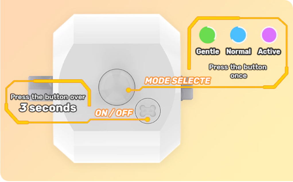 Wicked Ball имеет 3 режима реакции для взаимодействия: мягкий, нормальный и активный. Вы сами решаете, какой режим лучше всего подходит вашему питомцу. Для начала игры не нужно устанавливать дополнительные приложения на телефон. Просто откройте внешнюю оболочку, нажмите кнопку на Wicked Core и держите в течение 3 секунд, чтобы включить игрушку. Затем режим переключается каждый раз, когда вы нажимаете кнопку Wicked Core. Разные цвета светодиода сигнализируют о разных режимах. Зеленый - мягкий, синий - нормальный, розовый - для активных действий.