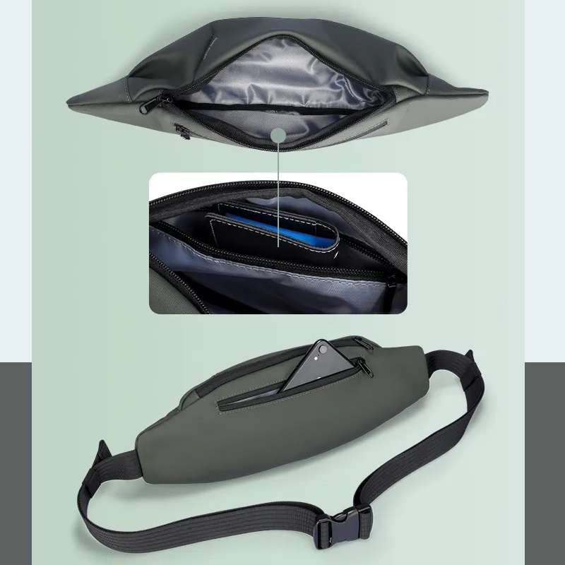 Сумка на пояс Mark Ryden MR3332 имеет достаточно места для того, чтобы вместить все необходимые вещи, такие как телефон, кошелек, ключи, документы, наушники, зарядное устройство и т.д. Сумка имеет размер 38 x 6 x 12 см и весит всего 200 гр, поэтому она не будет мешать вам или создавать лишний груз. Сумка также имеет наружный карман на молнии для разных мелочей.