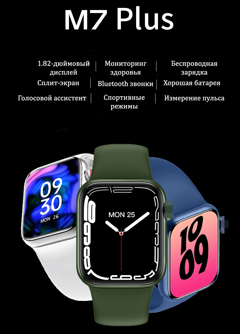 Умные часы Lemfo M7 Plus - это новинка 2022 года с отличным набором полезных функций. В данной модели имеется беспроводная зарядка, набор спортивных функций, измерение пульса и давления, голосовой помощник, возможность совершать звонки по Bluetooth и современный внешний вид. Модель часов 7 серии сможет стать вашим смарт-компаньоном на каждый день.