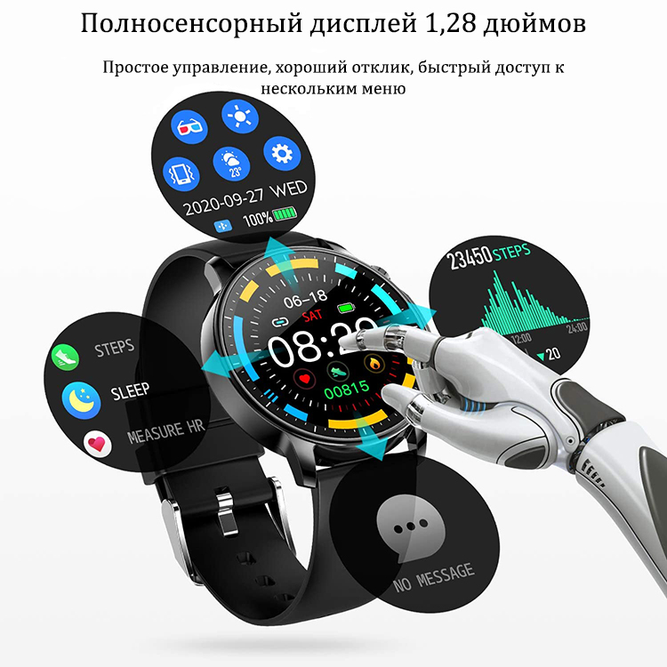 Смарт-часы оснащены большим 1,28-дюймовым HD-дисплеем. Это сенсорный экран, что делает его управление простым и интуитивно понятным. Отображаемая на нем информация всегда будет четкой и разборчивой. Вы также можете персонализировать его: выберите заставку, которая вам больше всего нравится, и наслаждайтесь стильным аксессуаром на вашем запястье!