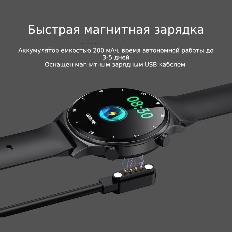 Ми рекомендуємо використовувати адаптери з потужністю не більше 5V/1A (такі зазвичай йдуть в комплекті зі смартфонами). Адаптери для швидкої зарядки можуть пошкодити акумулятор розумного годинника.
