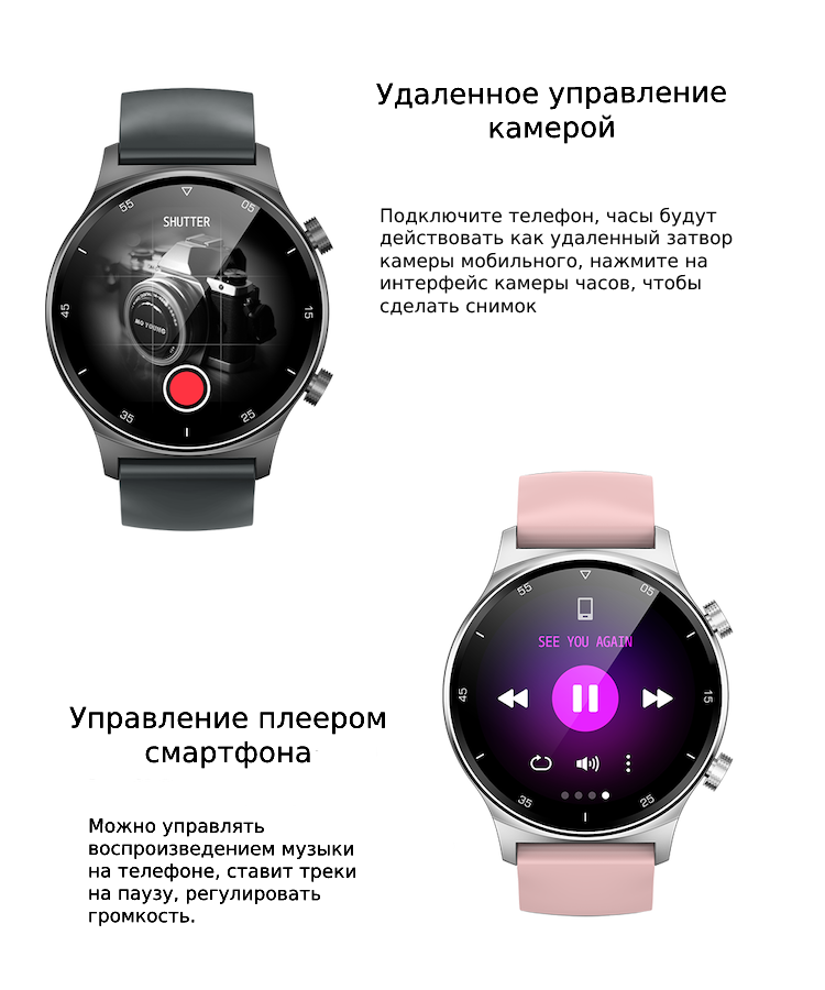 Додаткові функції: тренування дихання, вбудовані ігри, управління камерою та плеєр на смартфоні