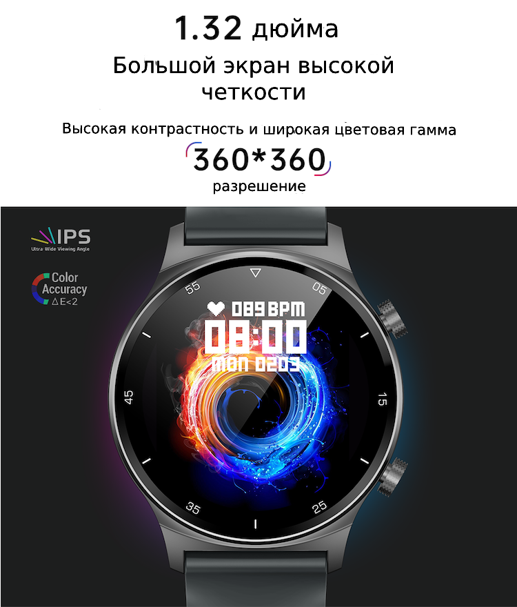 У Jiks Watch PRO ви отримаєте справді великий IPS -дисплей діагоналлю 1,32 дюйма, який відрізняється високою якістю зображення та широкою кольоровою гаммою. Екран має роздільну здатність 360х360 точок, що дарує йому відмінну контрастність і чіткість передачі кольору.