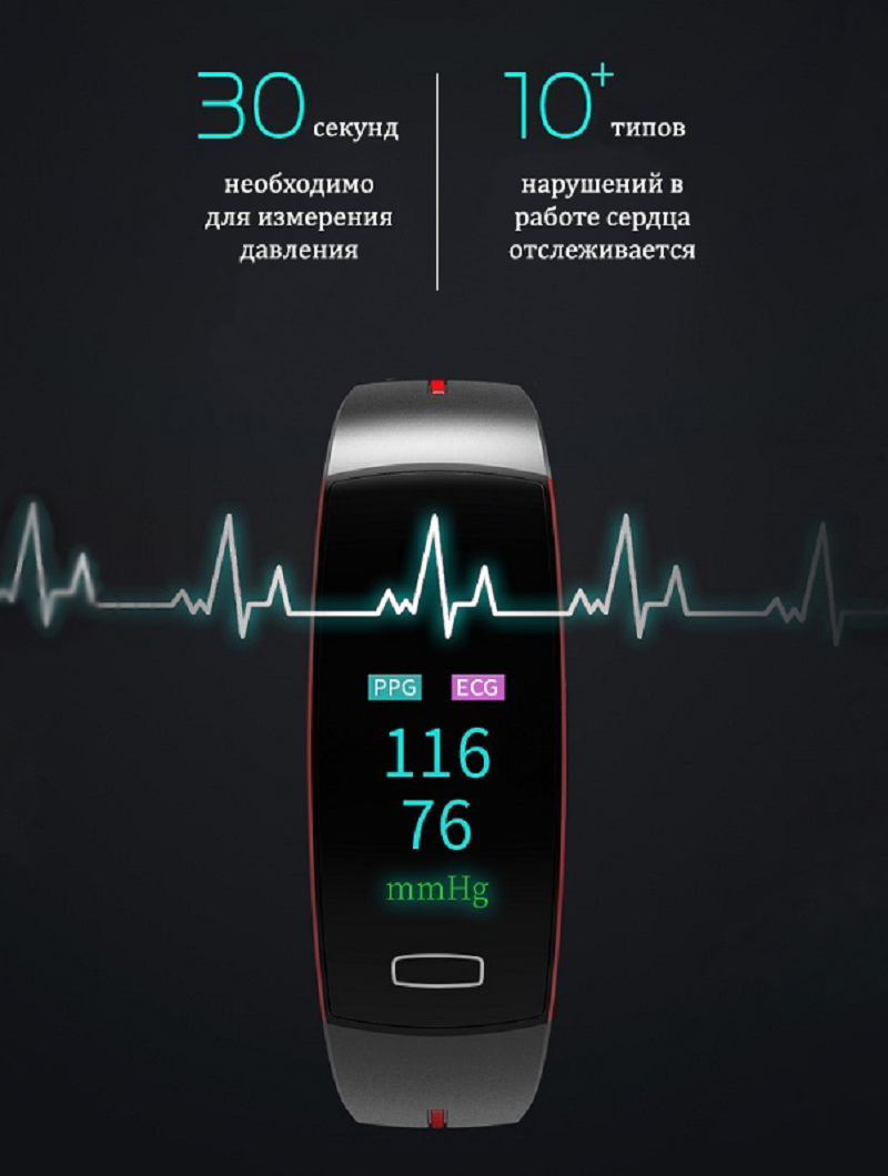 Смарт браслет для вимірювання тиску і кардіограми - це сучасне рішення для контролю за основними показниками здоров'я. Протягом дня пристрій збирає дані про кількість пройдених кроків, відстані, калорії, показаних пульсу і тиску.