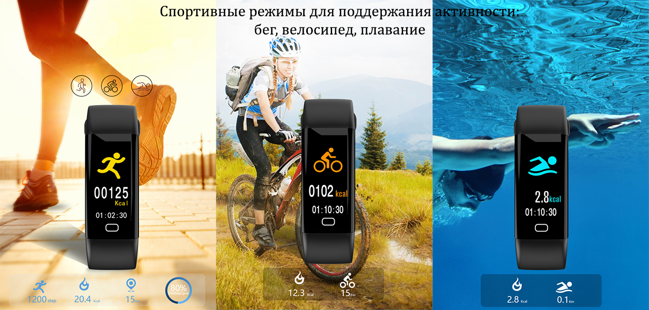 Три вбудовані спортивні режими: біг, велосипед, плавання